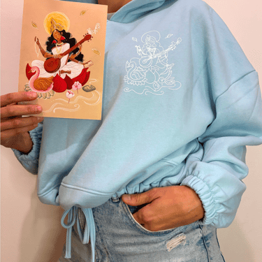 Sarasvatī , dont le nom signifie ‘la fluide’, est la Déesse de ce qui s’écoule : des rivières, des mots , de l’inspiration créative... Egalement Déesse de la Vibration, de la Musique, des Mantras, de la Parole et des Arts, elle nous accorde à la fréquence divine en jouant de sa Veena.